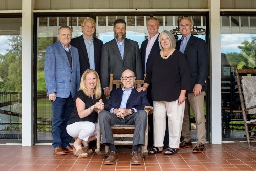 Long-tenured leaders are pictured with Joe Edwards in a photo from 2025: Tom Redding, Chad Williams, Clay McDaniel, Scott Swafford, Jeanie Travis, and John Edwards. Lori Tucker is at Joe's right.